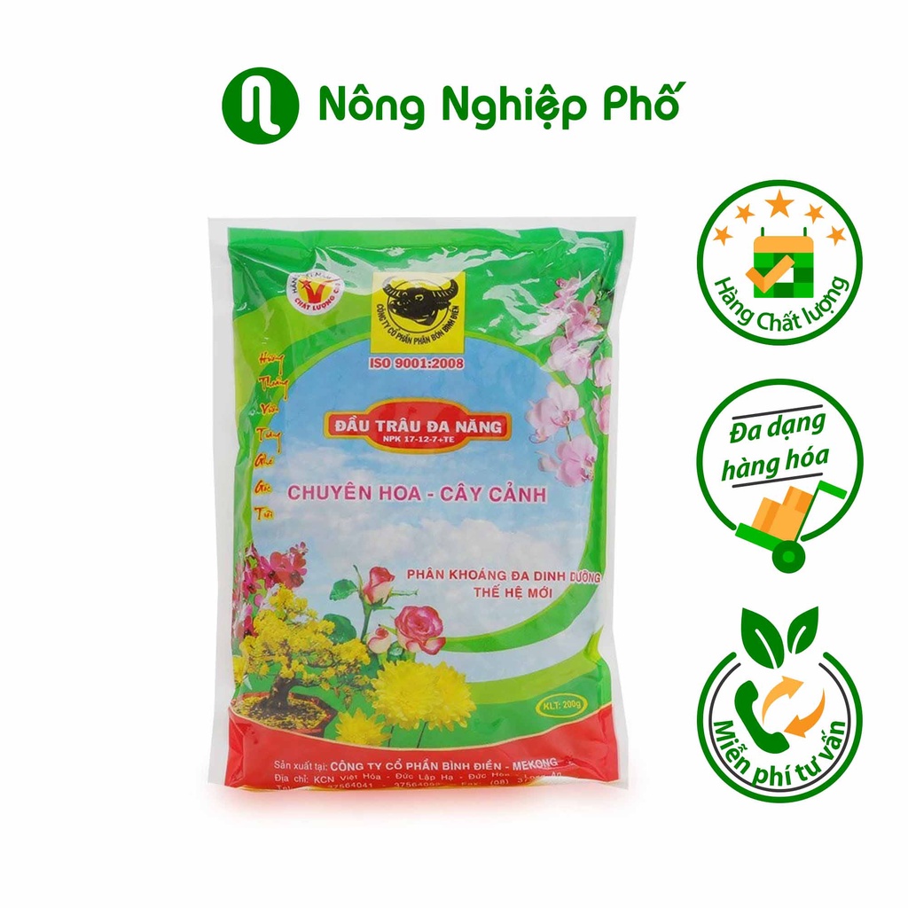 Nhà cửa & Đời sống > Làm vườn > Phân bón || PHÂN BÓN ĐẦU TRÂU MK ĐA NĂNG 17-12-7 DÙNG CHO HOA KIỂNG - TÚI 200GRAMCòn hàng