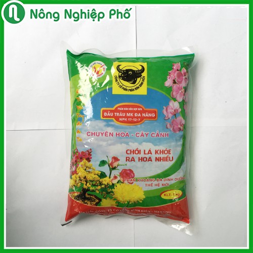 Phân bón đầu trâu MK đa năng 17-12-7 dùng cho hoa kiểngMô tả: Sản phẩm phân đầu trâu đa năng MK 17-12-7 được sản cuất theo công nghệ tiên tiến, thành phần khoáng hợp lý giúp kích thích chồi phát triển mạnh, phục hồi sau cắt tỉa và tạo tán, kích thích ra rễ cây và chống chịu sâu bệnh hại.