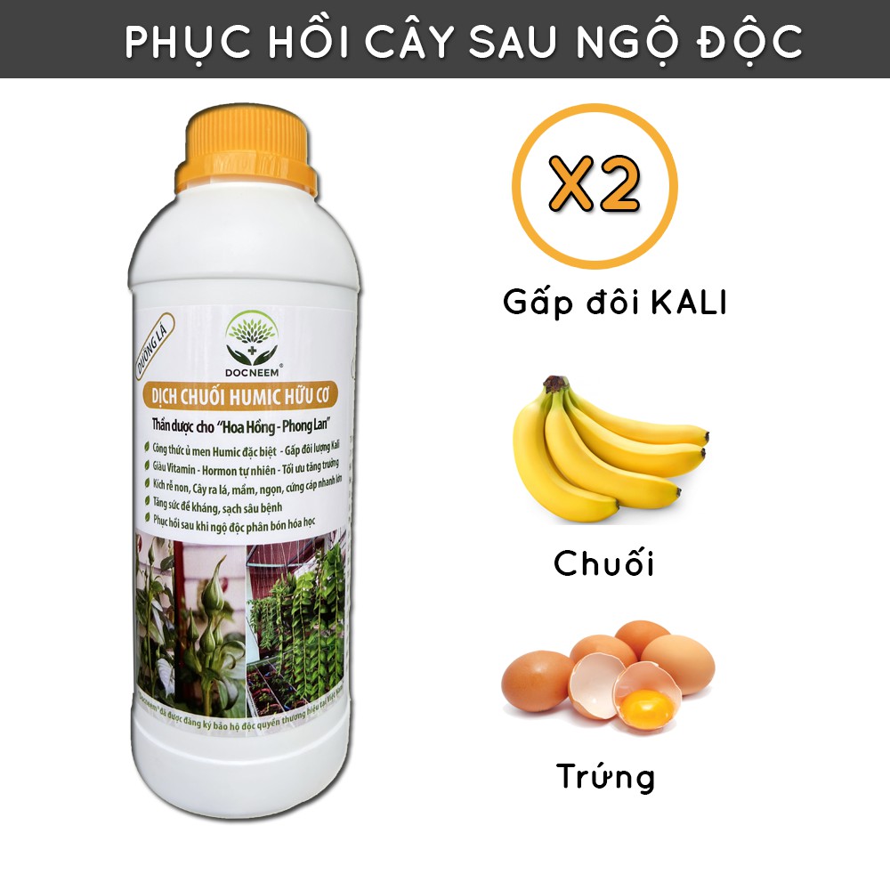 Phân bón dịch chuối DOCNEEM (chai 1 lít), bón lá, gốc, cho hoa lan, hoa hồng, cây cảnh, cây kiểng, trầu bà, monstera