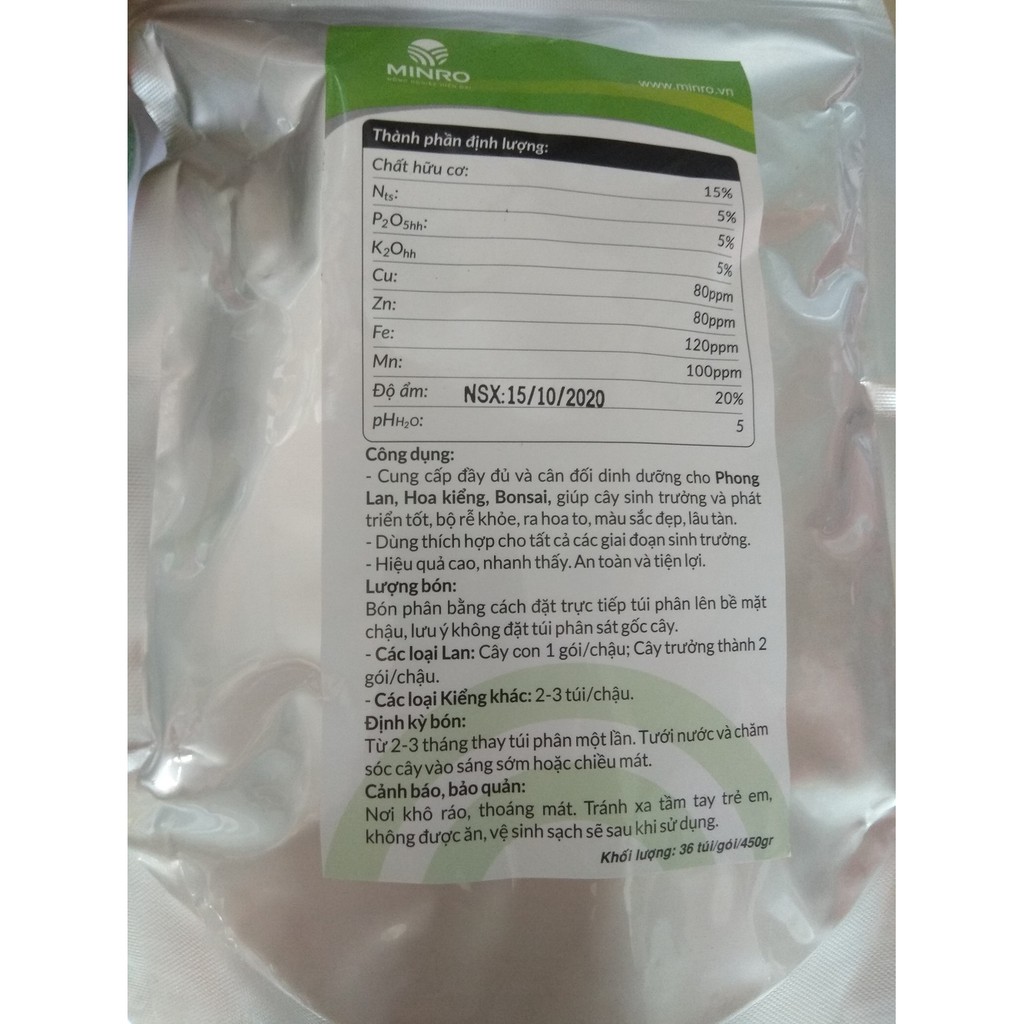Phân bón hữu cơ khoáng MINRO 5-5-5+TE dinh dưỡng cho hoa lan, bonsai - gói 36 túi