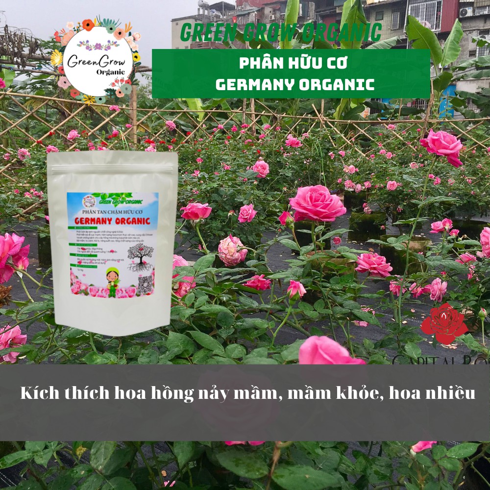 Phân bón hữu cơ tan chậm Germany Organic phân hữu cơ cho hoa hồng túi 1kg giúp rễ khỏe phát triển tốt MS136 GREEN GROWCó rất nhiều chủng loại phân viên nén tan chậm trên thị trường hiện nay, mỗi loại có mỗi ưu điểm, trong đó phân Germany Organic có ưu điểm cao đối với Hoa Hồng, Rau sạch và phù hợp với thời tiết chúng ta