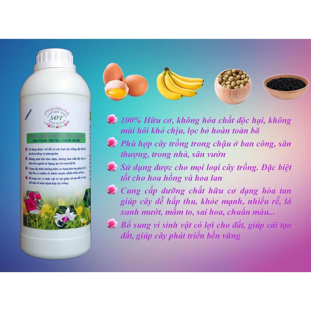 Phân bón Hữu cơ Vi sinh SOF 1000ml từ Đỗ tương, Trứng gà, Chuối, Humic Phân bón hoa hồng, hoa giấy, cây cảnh…
