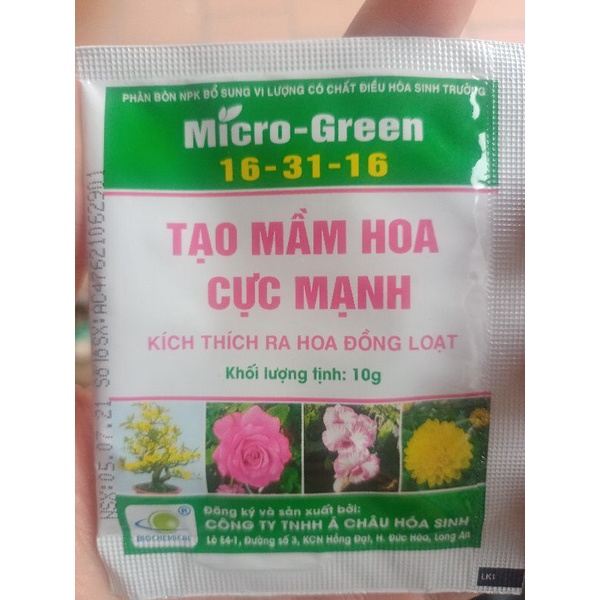 Giới thiệu Phân bón kích ra hoa Micro Green NPK 16-31-16 +TE + Phụ gia đặc biệt giúp tạo mầm hoa cực mạnh - 1 gói 10g