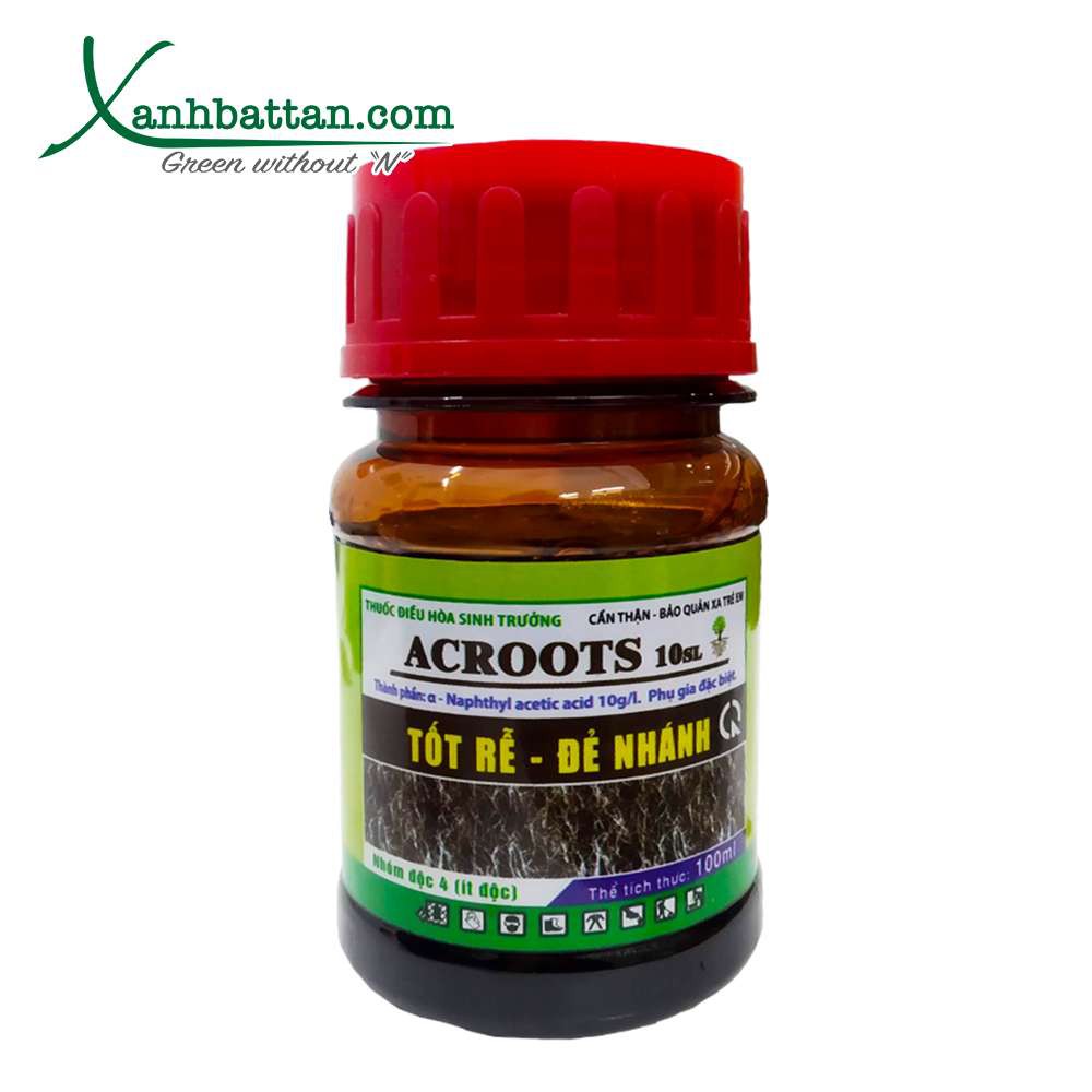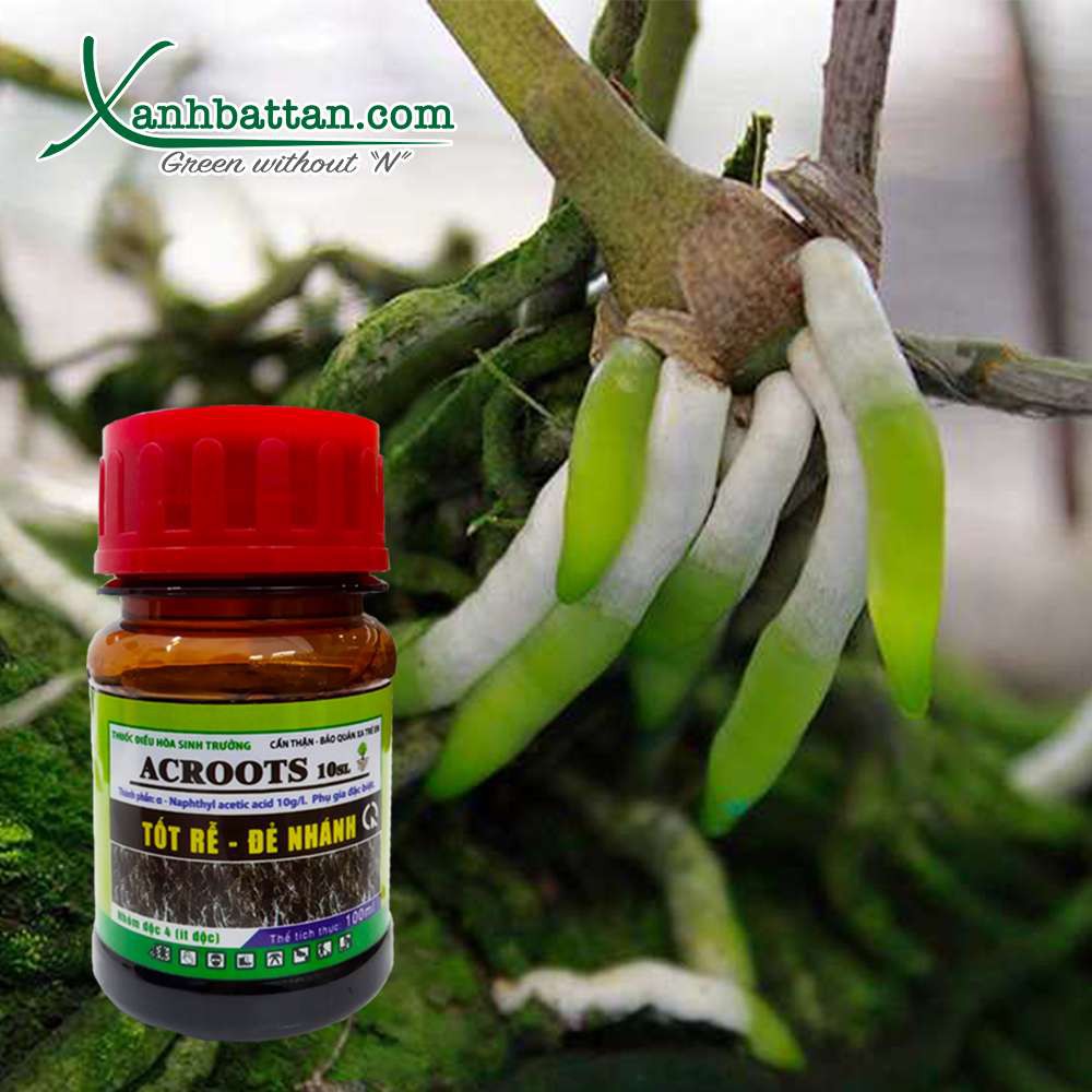 Acroot là dòng phân bón chứa hoạt chất Alpha- NAA có khả năng kích rễ, làm bật mầm và làm chồi xanh mượt. Acroot được sử dụng chính trong trường hợp bộ rễ bị tổn thương, kích rễ tơ phong lan, giúp rễ khỏe mạnh và làm xanh mầm các loại lan. Bên cạnh đó, Acroot còn được dùng chính trong kỹ thuật giâm cành, chiết cành các loại hoa hồng, lan.