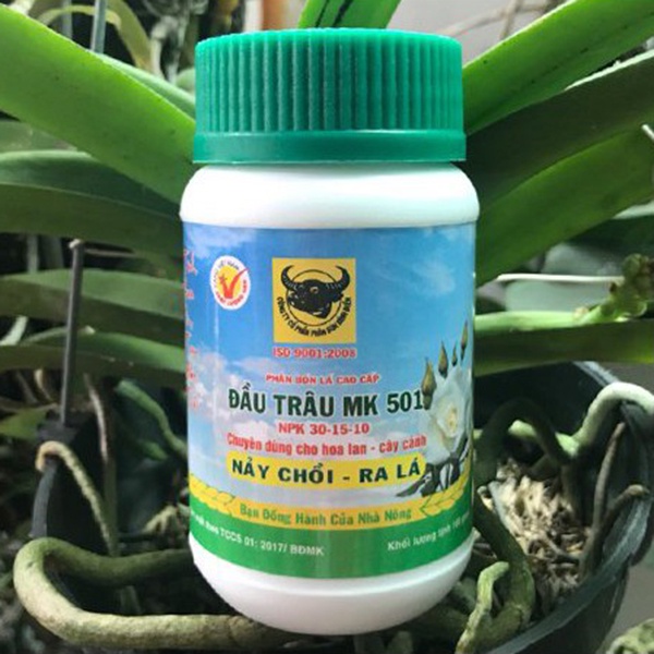 Giới thiệu Phân Bón Lá Đầu Trâu MK 501 Giúp Cây Nảy Chồi - Lá Chuyên Dùng Cho Lan Và Hoa Kiểng- Hũ 100g (PDT-501)