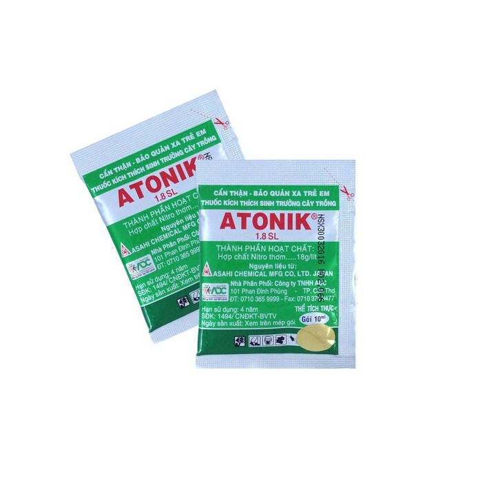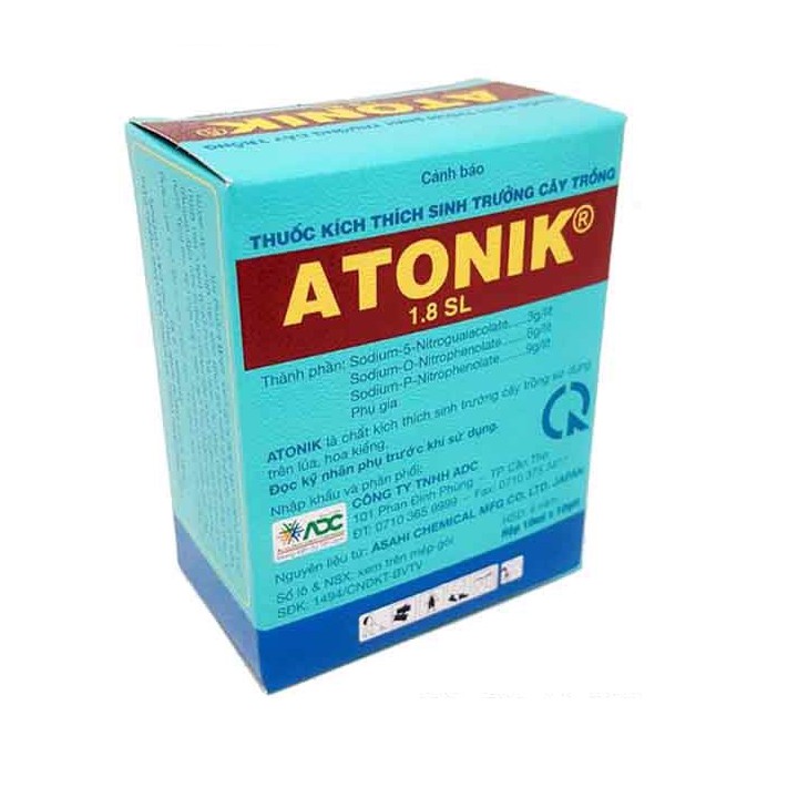 - Atonik là thuốc kích thích sinh trưởng cây trồng thế hệ mới. Cũng như các loại vitamin Atonik làm tăng khả năng sinh trưởng đồng thời giúp cây trồng tránh khỏi những ảnh hưởng xấu do những điều kiện sinh trưởng không thuận lợi gây ra.