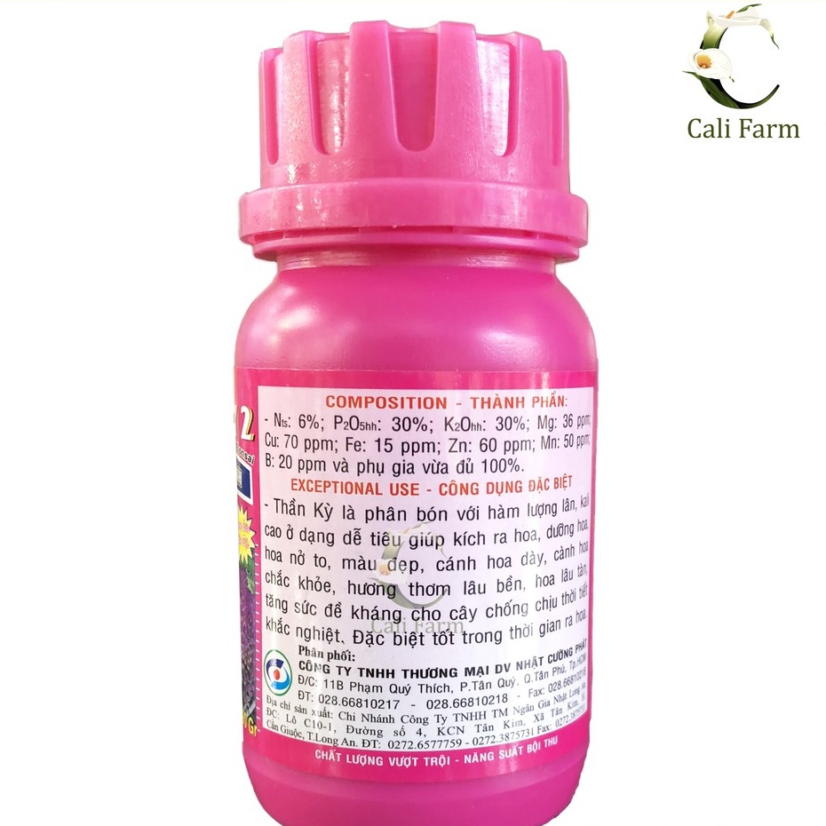 THẦN KỲ 2 là phân bón với hàm lượng lân, kali ở dạng dễ tiêu giúp kích ra hoa, dưỡng hoa nở to màu đẹp cánh hoa dày, cành hoa chắc khỏe, hương thơm lâu bền, hoa lâu tàn tằng sức đề kháng chống chịu thời tiết khắc nghiệt. đặc biệt tốt trong thời gian ra hoa.