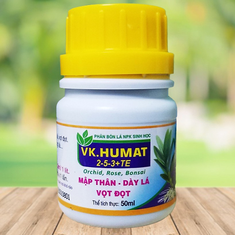 Phân Bón Lá NPK Sinh Học VK HUMAT lọ 50ml, Mập Thân, Dày Lá, Vọt Đọt