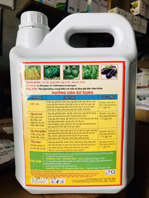 -Phân bón lá SEAWEED tưới tăng lực cho cây trồng : rất thích hợp cho quy trình sản xuất VietGAP.