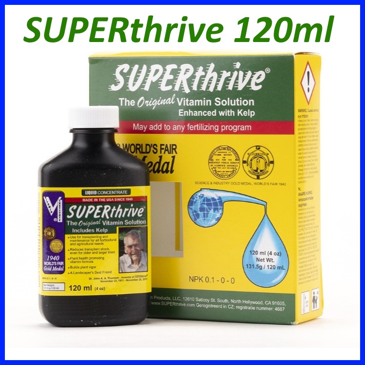 Thuốc Superthrive 120ml Kích Thích Sinh TrưởngSuper Thrive bổ xung 50 hormon làm phá vỡ sự chậm phát triển của cây. Làm cây mau ra rễ, chồi, hoa,… Cực tốt cho lan.
