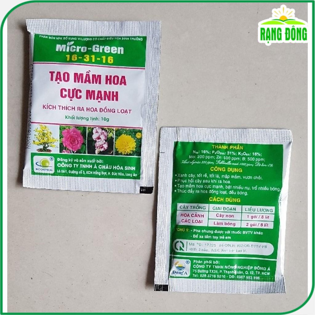 Phân Bón Micro-Green 16-31-16 Kích Ra Hoa Đồng Loạt Cực Mạnh, Hoa Nở To, Đều (gói 10 gram) - Hạt giống Rạng Đông