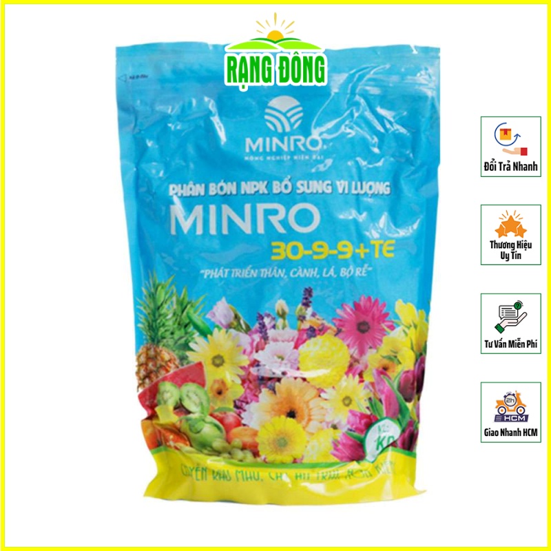 Giới thiệu Phân Bón NPK Minro 30-9-9-TE PHÁT TRIỂN THÂN CÀNH LÁ VÀ BỘ RỄ (gói 1KG) - Hạt giống Rạng Đông