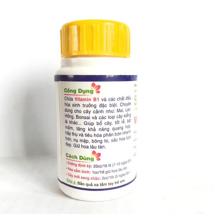 Chứa Vitamin B1 và các chất điều hòa sinh trưởng đặc biệt. Chuyên dùng cho cây cảnh như: Mai, Hoa Lan, Hồng, Bonsai và các loại cây kiểng lá khác… Giúp Bổ Cây, tốt rễ, bật mầm, tăng khả năng quang hợp, hấp thụ và tiêu hóa phân bón nhanh hơn, nụ mập, bông to, sắc hoa tươi đẹp, Giữ Hoa lâu tàn.