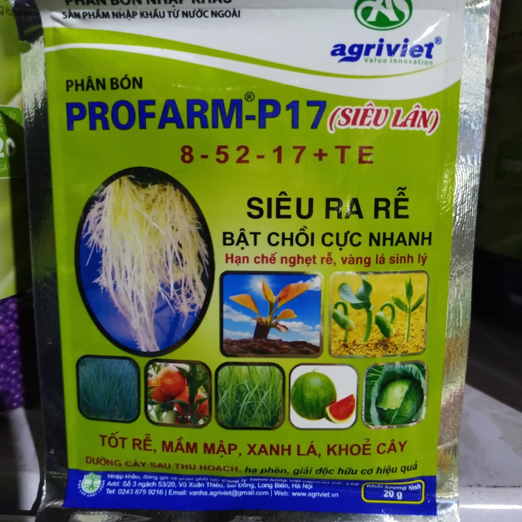Nhà cửa & Đời sống > Làm vườn > Phân bón || Phân bón Profarm- P17( siêu lân) 8- 52-17 + TE siêu ra rễ, bật chồi cực nhanhCòn hàng
