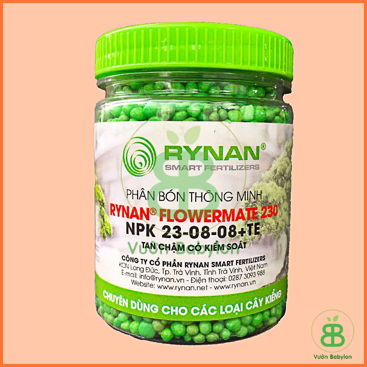 RYNAN® FLOWERMATE 230 là dòng sản phẩm phân bón thông minh tan chậm có kiểm soát chuyên dùng cho các loại kiểng lá, kiểng treo, bonsai, kiểng công trình,... Thời gian cung cấp dưỡng chất lên đến 180 ngày. Giúp cây sinh trưởng khỏe mạnh, tăng sức đề kháng, hạn chế nấm bệnh, phát triển thân lá, giữ màu xanh cho cây.