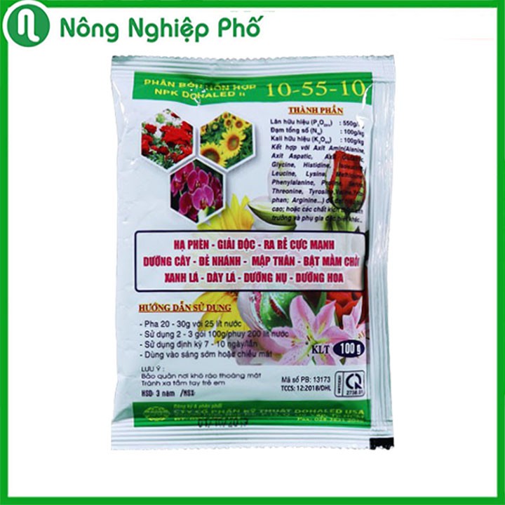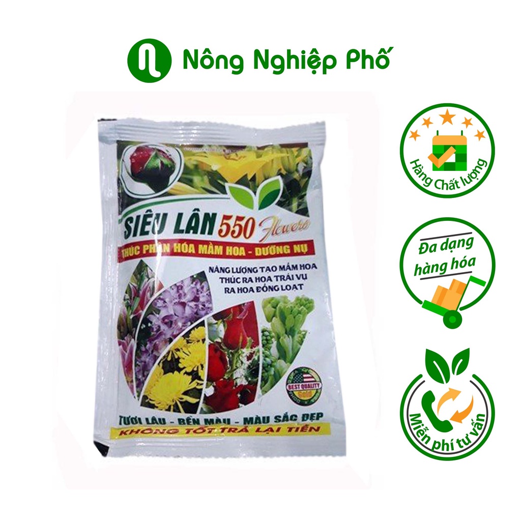 Phân Bón Siêu Lân 550 FLOWERS 10-55-10 Thúc Ra Hoa Trái Vụ, Hạ Phèn, Giải Độc, Ra Rễ Gói 100 Gram