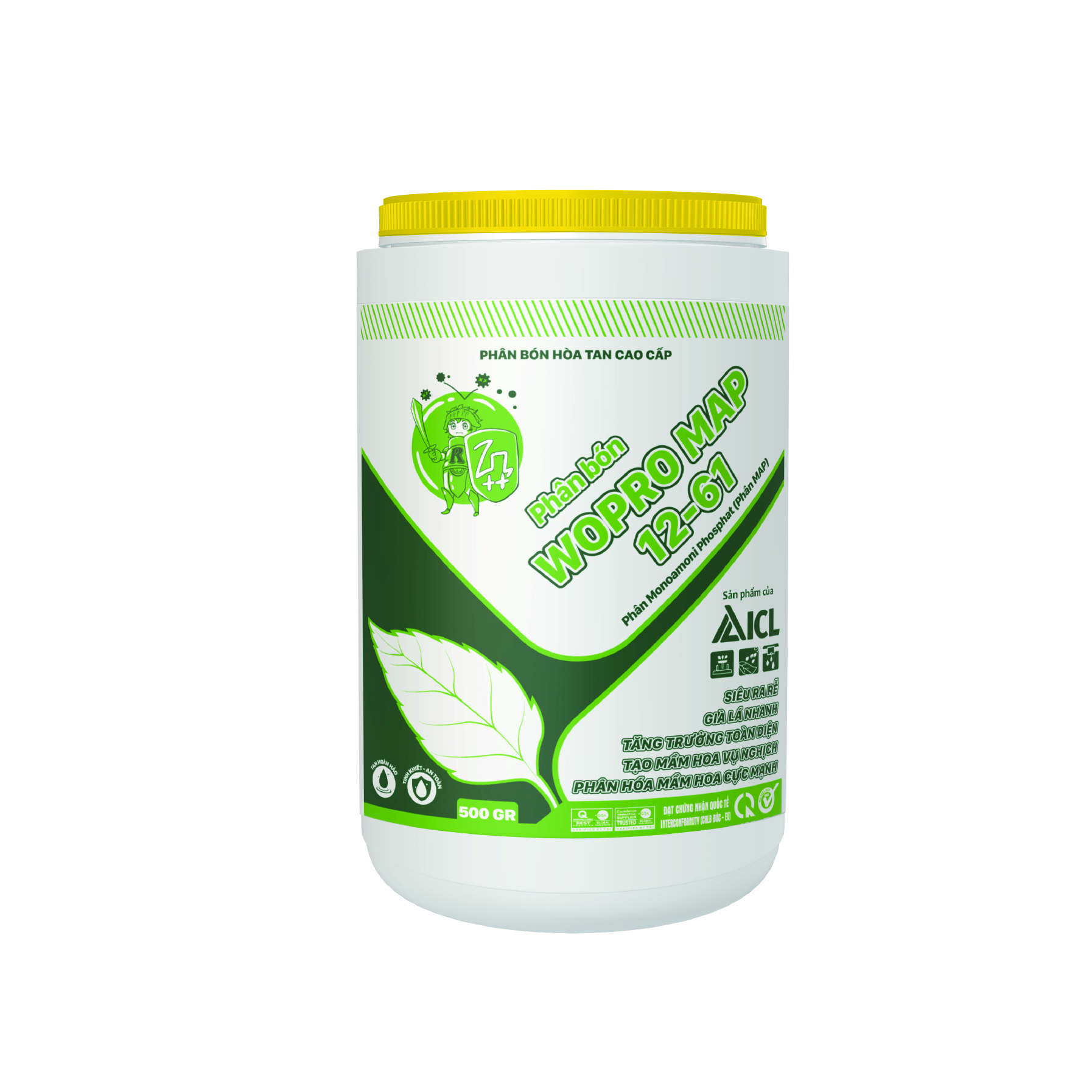 Giới thiệu Phân bón siêu lân ICL MAP 12-61 Ra hoa đồng loạt - Kích thích ra rễ - Túi 1kg và Hũ 500gr