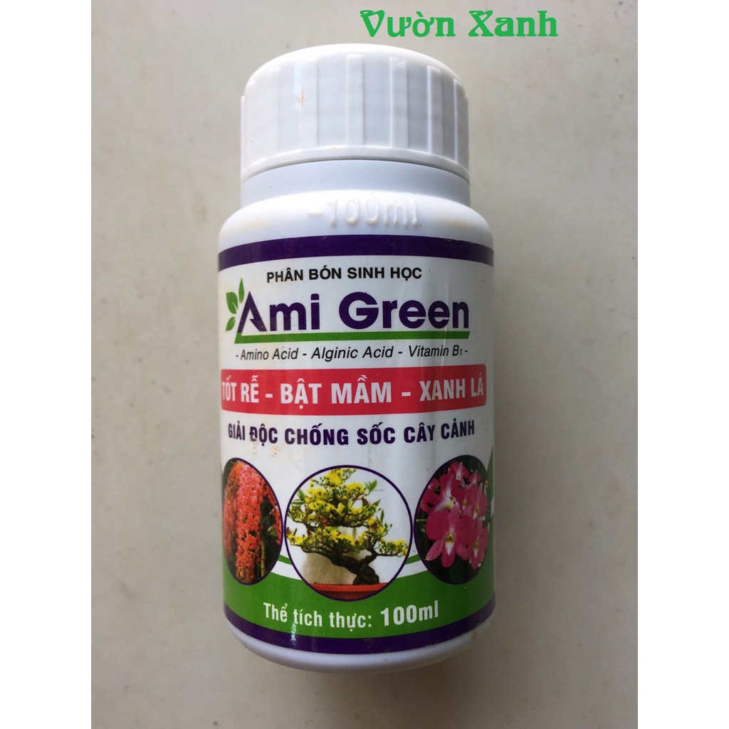 Giới thiệu Phân bón sinh học Ami green - chai 100ml kích rễ, giải độc hữu cơ cho cây