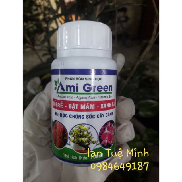 Phân bón sinh học AMI GREEN giải độc cây trồng. Tốt rễ, bật mầm, xanh lá chai 100ml.Thành phần: