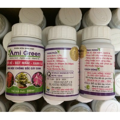 Giới thiệu Phân bón sinh học Ami green - chai 100ml kích rễ, giải độc hữu cơ cho cây