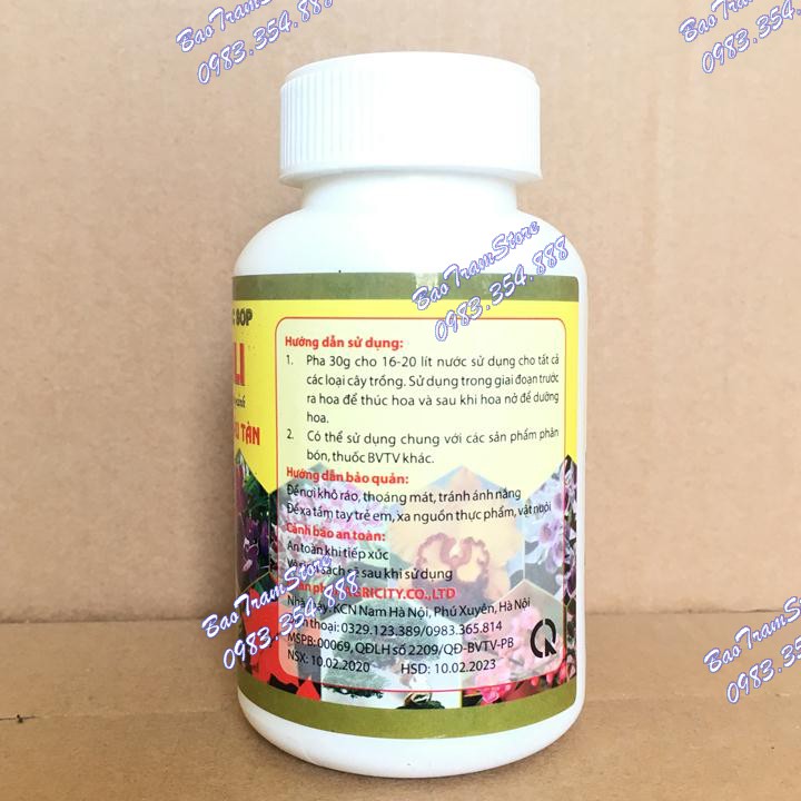 Pha 30g cho 16-20 lít nước sử dụng cho tất cả các loại cây trồng trước khi ra hoa để thúc hoa và sau khi ra hoa để dưỡng cây.