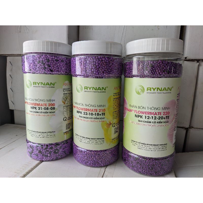 ✅RYNANFLOWERMATE là dòng sản phẩm phân bón thông minh tan chậm có kiểm soát chuyên dùng cho hoa phong lan. Cung cấp đầy đủ dưỡng chất cần thiết cho hoa phong lan ở giai đoạn mọc mầm và trưởng thành, thời gian cung cấp dưỡng chất lên đến 120 ngày. Giúp cây sinh trưởng khỏe mạnh, hạn chế nấm bệnh, kích thích trổ nụ, ra hoa đồng loạt, màu sắc rực rỡ và lâu tàn.