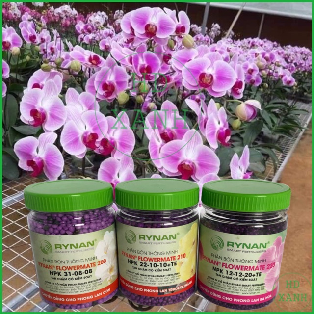 * RYNAN 200 ( NPK 31-08-08 ): Chuyên dùng cho hoa phong lan lúc mọc mầm và trưởng thành.
