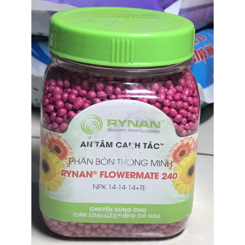 Phân Bón tan chậm Thông Minh Rynan Flowermate 240 NPK 14-14-14+TE Chuyên dùng cho các loại cây kiểng có hoa (150g)