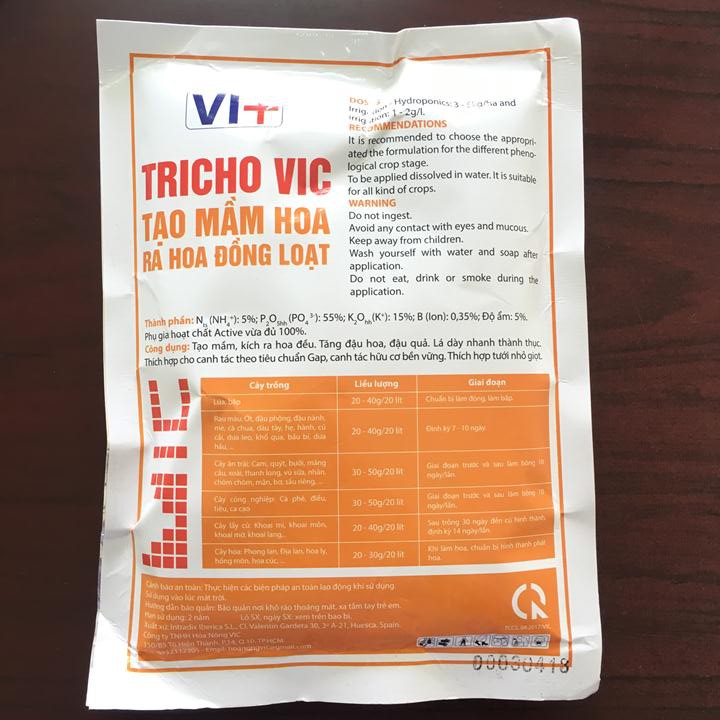 Giới thiệu Phân bón Tricho Vic Tạo mầm ra hoa 5-55-15+ 0,35B gói 300g xuất xứ Tây Ban Nha