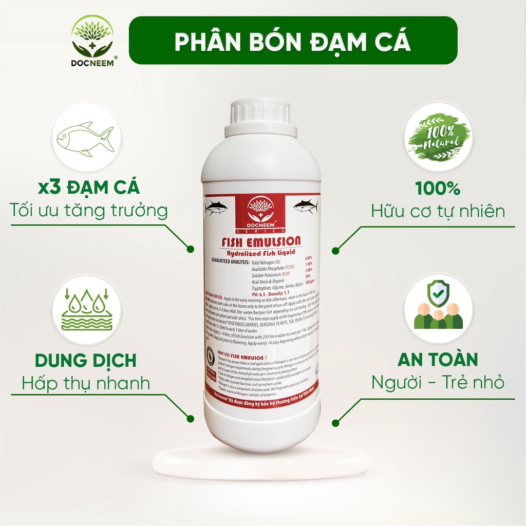 Giới thiệu Phân đạm cá Docneem, phân cá Fish Emulsion (1 lít) hữu cơ cho hoa hồng, rau sạch, hoa, cây cảnh trong nhà ngoài trời