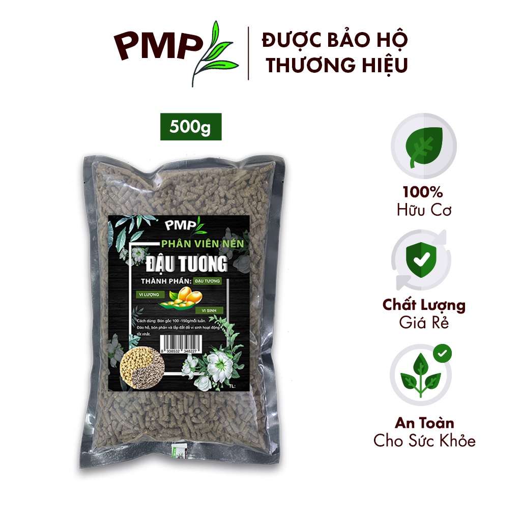 Phân Đậu Tương PMP Phân Bón Viên Nén Tan Chậm Vi Sinh Siêu Lân Cho Hoa Hồng, Hoa Lan, Cây Cảnh, Rau, Củ Quả 500g