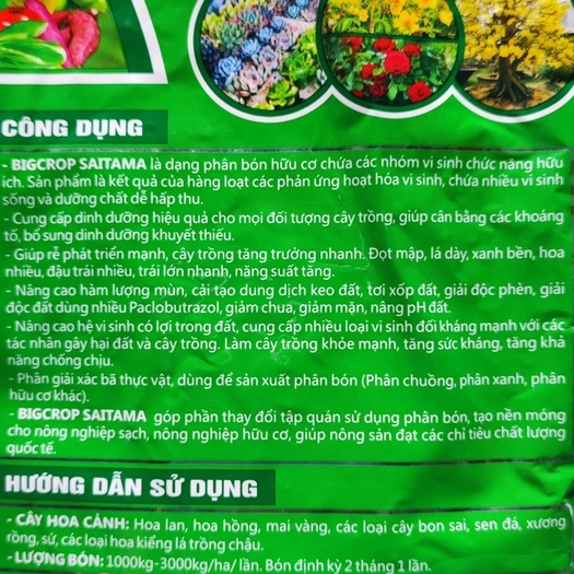 Phân Hữu Cơ Vi Sinh SAITAMA (1kg), Phân Bổ Sung Nấm Đối Kháng TrichodermaSAITAMA là phân bón gốc hữu cơ vi sinh dùng cho nhiều đối tượng, nhiều loại đất trồng và nhiều giai đoạn. sử dụng cho Hoa Lan thì cực kỳ tốt. Sản phẩm được bán với hình ảnh và thông tin bên dưới: