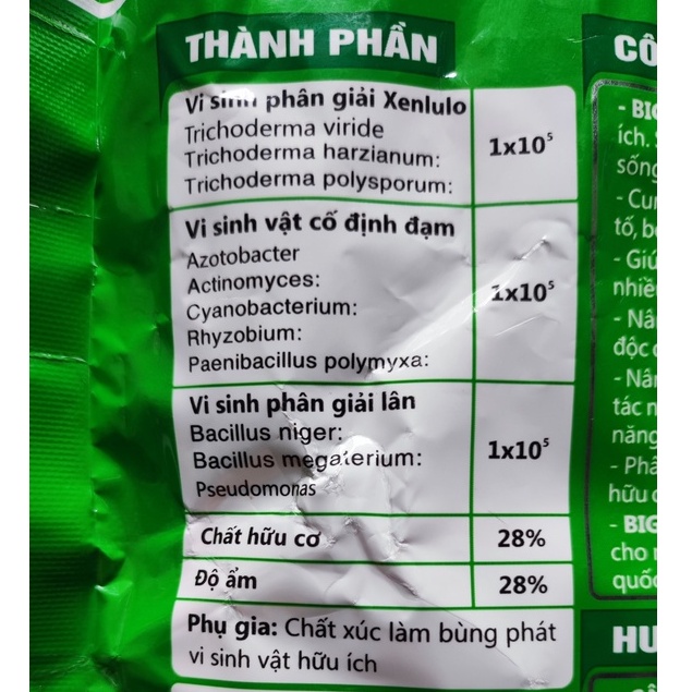 Nguyên liệu chính vi sinh đối kháng lại dịch hại, vi sinh phân hủy, vi sinh tạo sản xuất đạm – lân – hoóc môn sinh trưởng, phân gà, than sinh học, acid humic, acid fulvic.