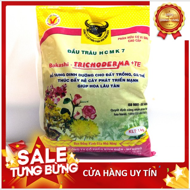 Phân bón hữu cơ vi sinh Đầu Trâu HCMK 7 Bokashi Trichoderma được sản xuất bởi công ty cổ phân Bình Điện với công nghệ tiên tiến. Phân dược sản xuất bằng các loại rác thải hữu cơ được bổ siung các vi sinh vật có lợi, đặc biệt là Nấm đối kháng Trichoderma. Ngoài ra phân còn được bổ sung các chất vi lượng cần thiết cho cây trồng.\Phân hữu cơ vi sinh là sản phẩm có nguồn gốc 100% từ hữu cơ, vừa tận dụng được rác thải sinh hoạt vừa bổ sung các chất sinh dưỡng và các vi sinh vật cần thiết cho dất. Giúp cải tạo đất, làm tăng năng suất cây trồng vừa bảo vệ môi trường.