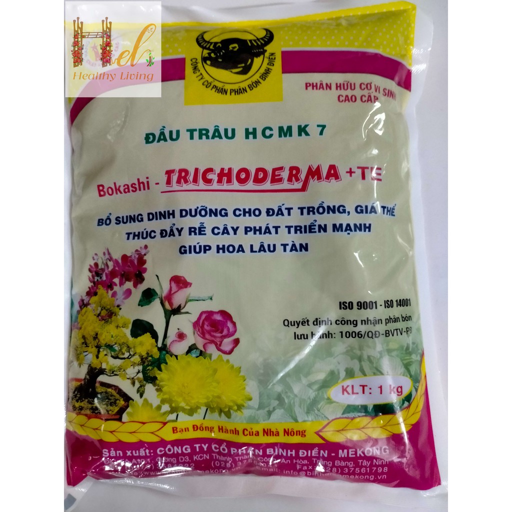 Giới thiệu Phân Hữu Cơ Vi Sinh Trichoderma + TE Đầu Trâu HCMK7 1Kg Trồng Rau Sạch, Hoa Bằng Đất Sạch, Xơ Dừa, Phân Hữu Cơ