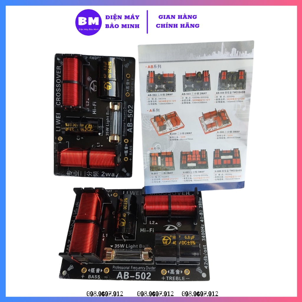 Giới thiệu [Mã ELHACE giảm 4% đơn 300K] Phân tần 2 đường tiếng AB-502 - Mạch phân tần dùng cho 1 Bass 1 Treble
