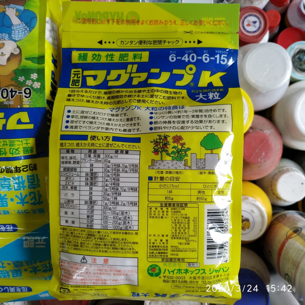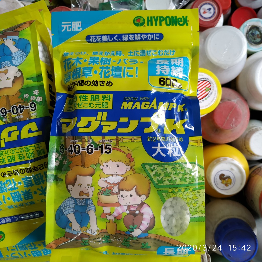 Nhà cửa & Đời sống > Làm vườn > Phân bón || Phân tan chậm Nhật trắng Magamp K 6-40-6-15 gói 600gCòn hàng