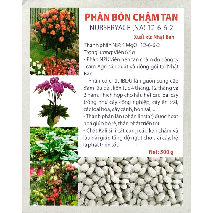 Nhà cửa & Đời sống > Làm vườn > Phân bón || Phân tan chậm quả bàng Nhật Bản Nurseryace NA 12-6-6 hộp 500gCòn hàng