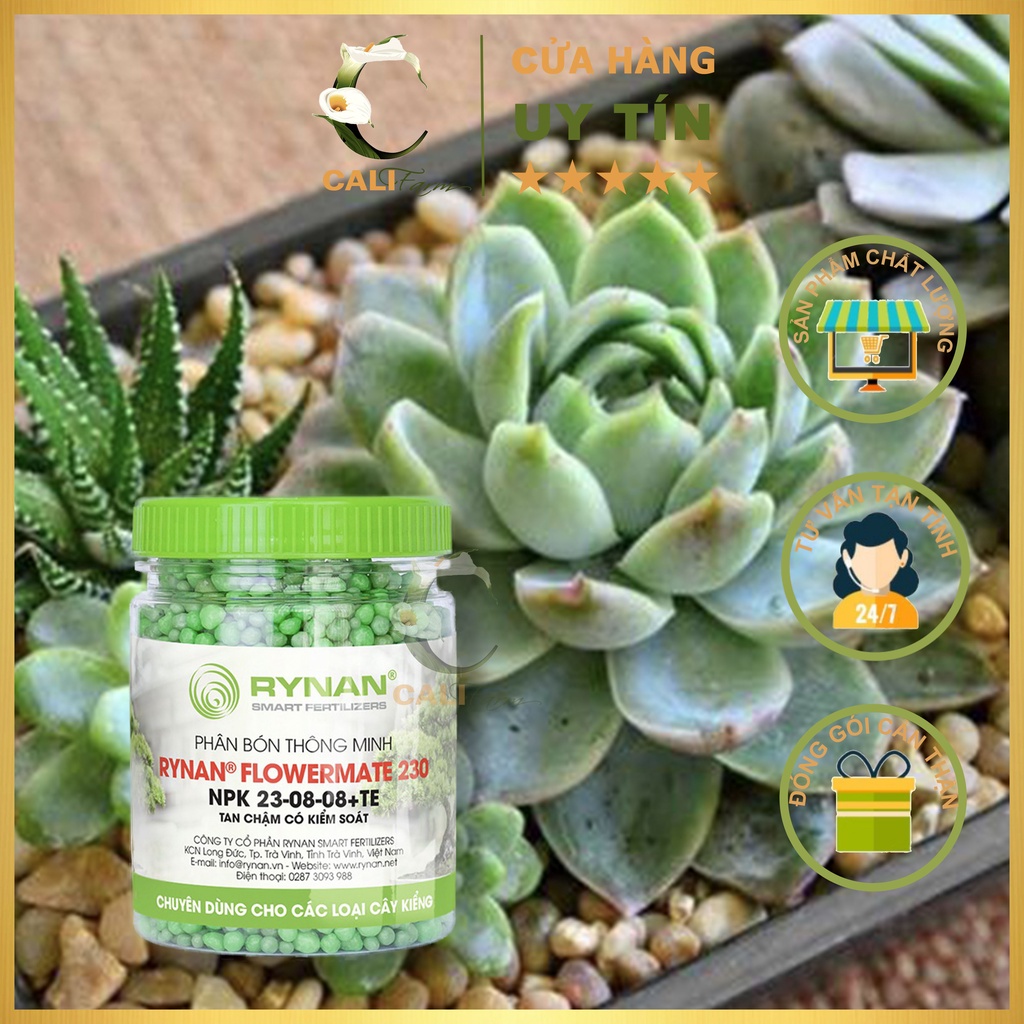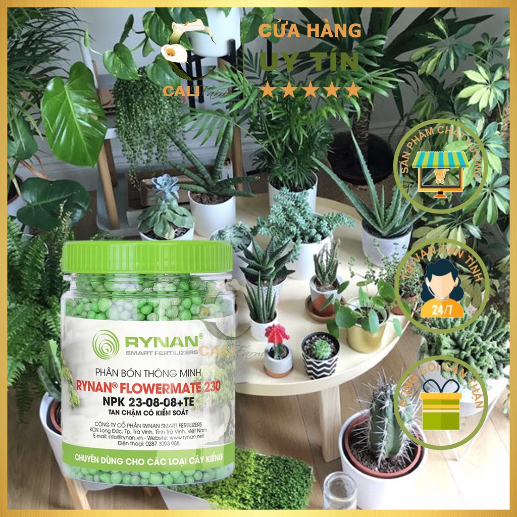 🍀 RYNAN FLOWERMATE 230 là dòng sản phẩm phân bón thông minh tan chậm có kiểm soát chuyên dùng cho các loại kiểng lá, kiểng treo, bonsai, kiểng công trình,... Thời gian cung cấp dưỡng chất lên đến 180 ngày. Giúp cây sinh trưởng khỏe mạnh, tăng sức đề kháng, hạn chế nấm bệnh, phát triển thân lá, giữ màu xanh cho cây.🍀 Khối Lượng : 150g/ hũ
