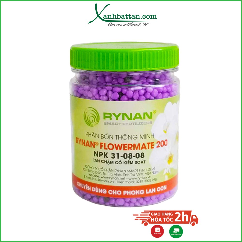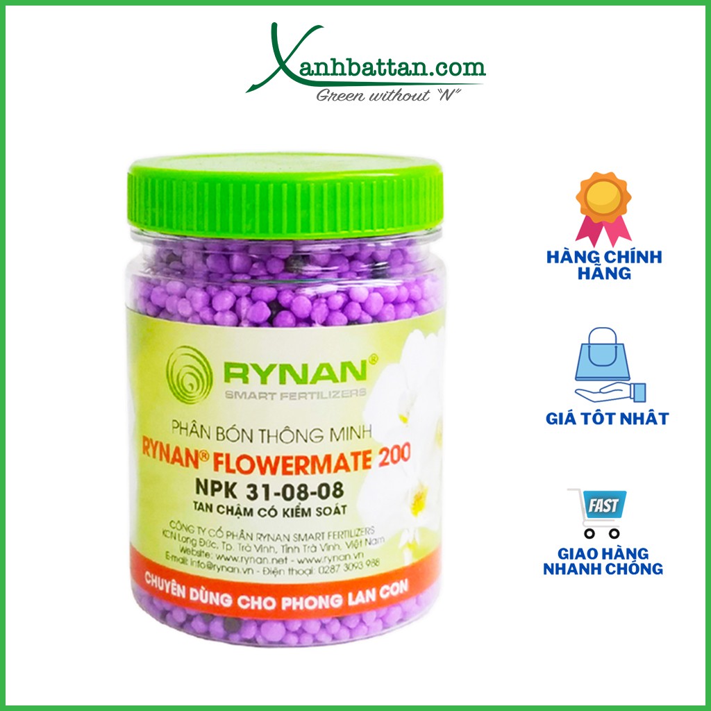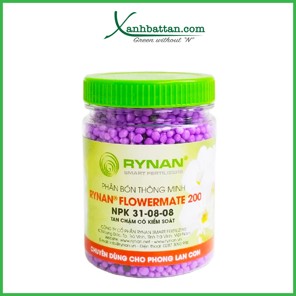 Phân bón Rynan 200 có hàm lượng khoáng N-P-K lần lượng là 31%, 8% và 8% và hàm lượng chitosan được bổ sung giúp cho phong lan sinh trưởng mạnh, giúp cây lan con sinh trưởng và phát triển, kích thích chồi và lá sinh trưởng mạnh.