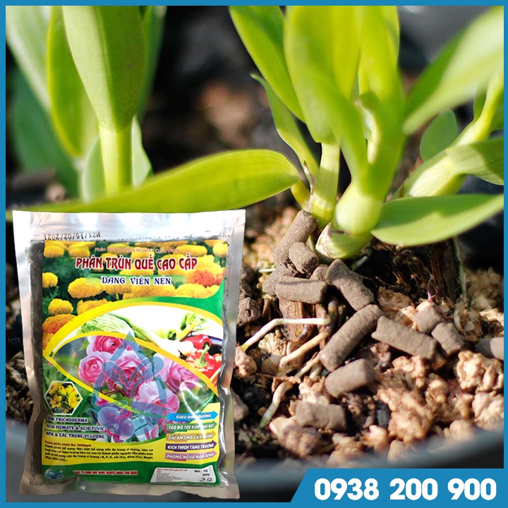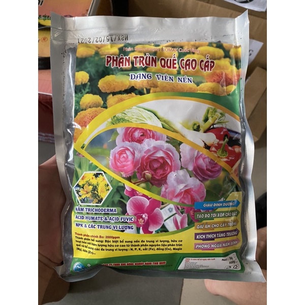 - Phân trùn quế dạng viên tan chậm cực tốt cho hoa hồng và hoa lan