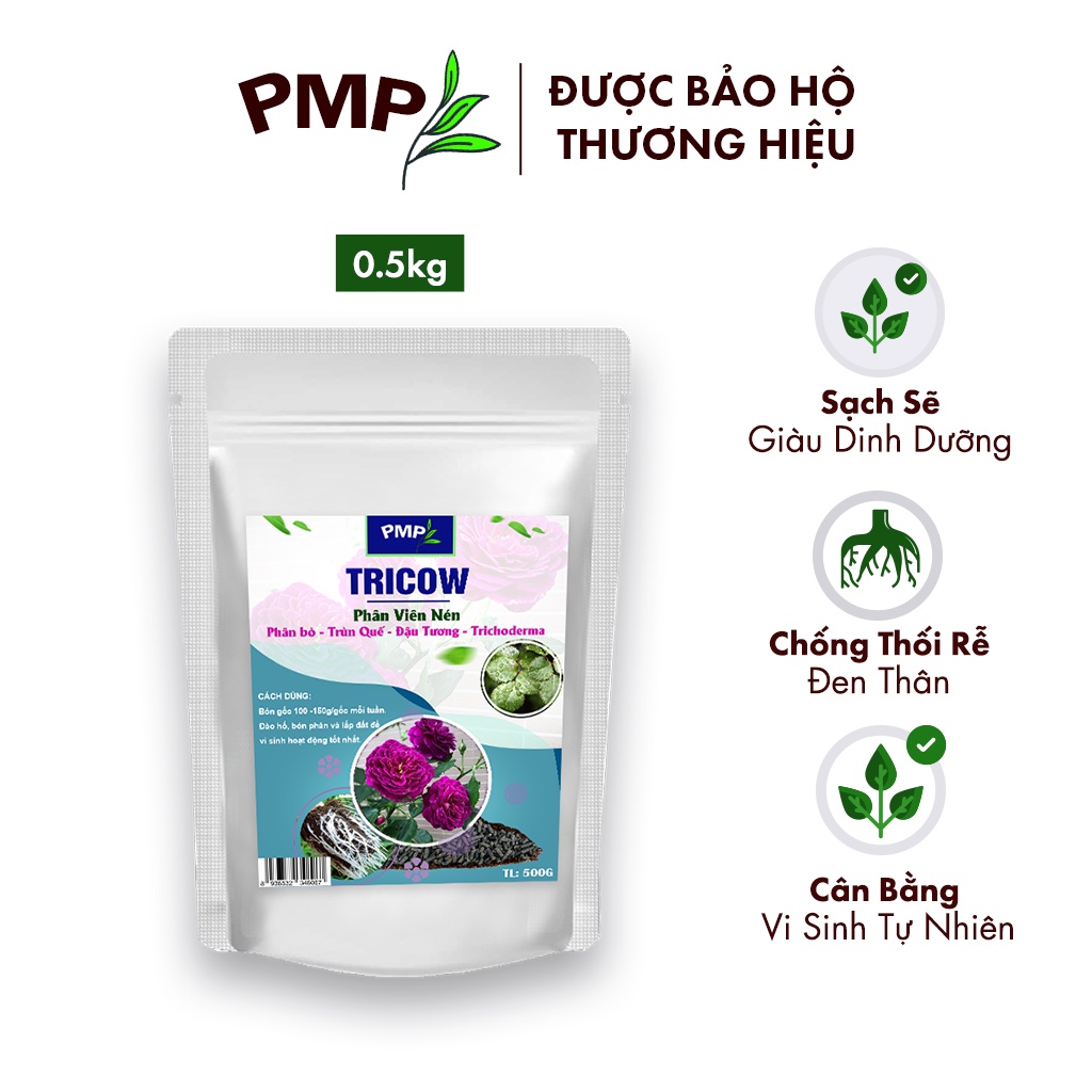 Giới thiệu Phân Trùn Quế- Phân Bò- Đậu Tương Trichoderma PMP Dạng Viên Nén Cho Hoa Hồng, Rau Sạch, Cây Cảnh 500g