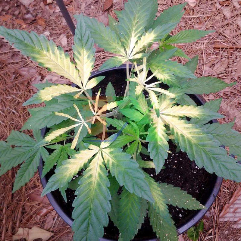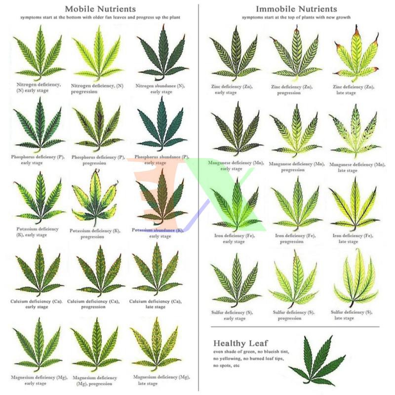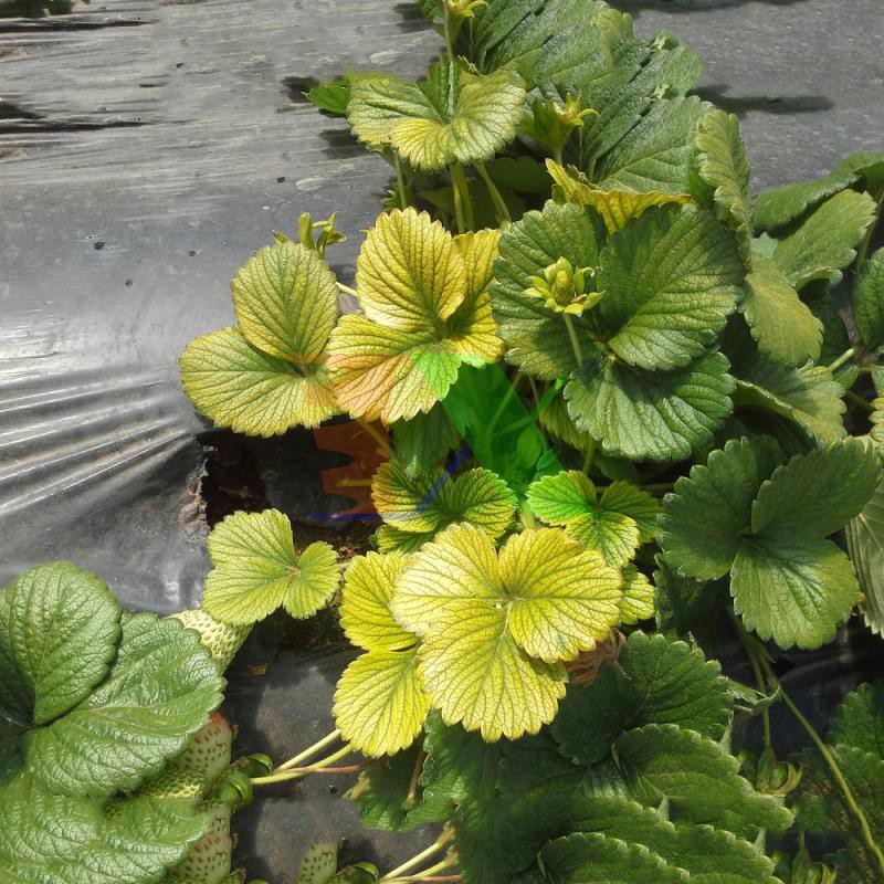 Thiếu sắt thể hiện là lá vàng, chuyển dần sang bạc vì không có khả năng tổng hợp diệp lục.