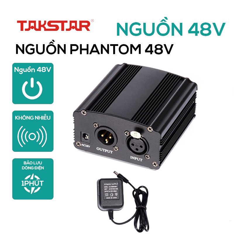 👉 Nguồn Phantom 48V là nguồn phantom rời, dùng để cung cấp nguồn + 48V phantom cho các microphone condenser, ví dụ Takstar K200, k320, sm-8b, k600 hoặc các dòng micro sử dụng nguồn điện rời khác.