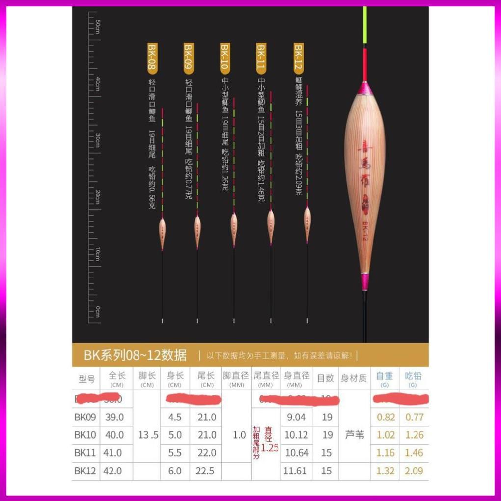 - Là dòng phao cỏ cao cấp được làm hoàn toàn thủ công,với chất liệu được làm từ cỏ lau sậy,được làm tỉ mỉ chi tiết từng công đoạn.Mỗi phao đều có thông số và độ tải chì riêng thích hợp câu cá rô cá chép ,chôi, trắm...