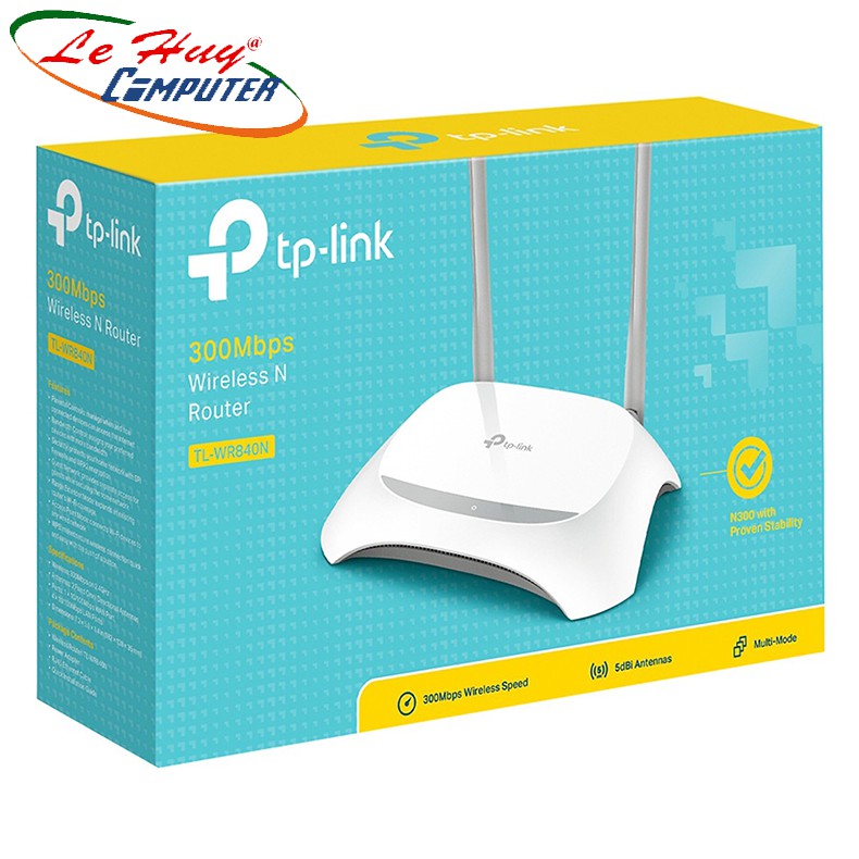 Router Wifi Chuẩn N 300Mbps TP-Link TL-WR840N là thiết bị kết nối mạng có dây / Wi-Fi kết hợp thiết kế đặc biệt dành nhu cầu mạng văn phòng doanh nghiệp nhỏ và gia đình. TL-WR840N cho một hiệu suất Wi-Fi đặc biệt và tiên tiến do đó lý tưởng cho việc trải nghiệm video HD, VoIP và chơi game trực tuyến. Ngoài ra, nút WPS (Wi-Fi Protected Setup) bên ngoài có kiểu dáng đẹp và thời trang cũng góp phần đảm bảo việc mã hóa WPA2 và ngăn chặn sự xâm nhập mạng từ bên ngoài.
