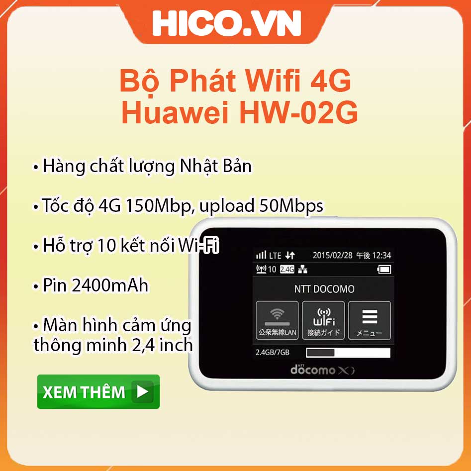 [Mã ELHAMS5 giảm 6% đơn 300K] Bộ Phát Wifi 3G 4G Huawei Docomo HW-02G - Hỗ Trợ Kết Nối 10 Thiết Bị - Hàng Nội Địa Nhật