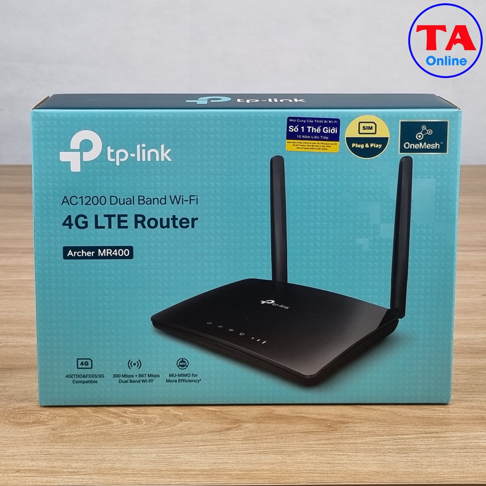 Máy tính & Laptop > Thiết Bị Mạng > Bộ Phát Wifi || [Mã 44ELSALE2 giảm 7% đơn 300K] Bộ phát WiFi 4G TP-Link Archer MR400 Tốc độ 4G 150Mbps WiFi băng tần kép AC 1200MbpsCòn hàng