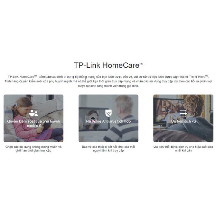 - Tính năng HomeCareTM của #tplink giúp người dùng sỡ hữu một kết nối an toàn, và tính năng kiểm soát nội dung truy cập của các thiết bị trong mạng, hệ thống Antivirus tích hợp.