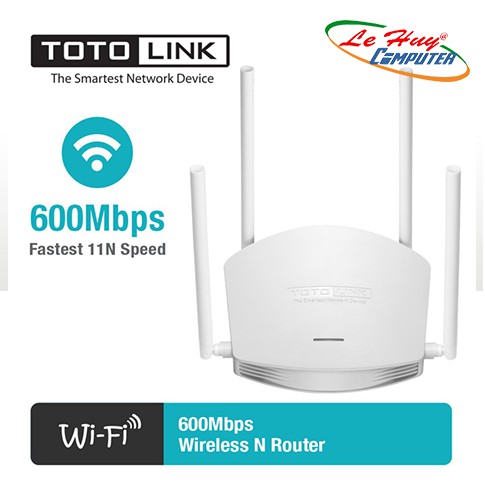 Bộ Phát WiFi Router TOTOLINK 600Mbps N600R - Giải Pháp Wifi Cho Căn Chính HãngN600R là thiết bị router wifi tương thích chuẩn kết nối IEEE 802.11N cung cấp tốc độ 600Mbps, chạy trên băng tần 2.4GHz. Với 04 ăng ten hiệu suất cao, N600R cung cấp tín hiệu wifi ổn định hơn và vùng phủ sóng rộng hơn để giảm những khu vực khó tiếp cận. Nhìn chung, N600R là lựa chọn tốt nhất cho văn phòng nhỏ sử dụng wifi trên băng tần 2.4GHz